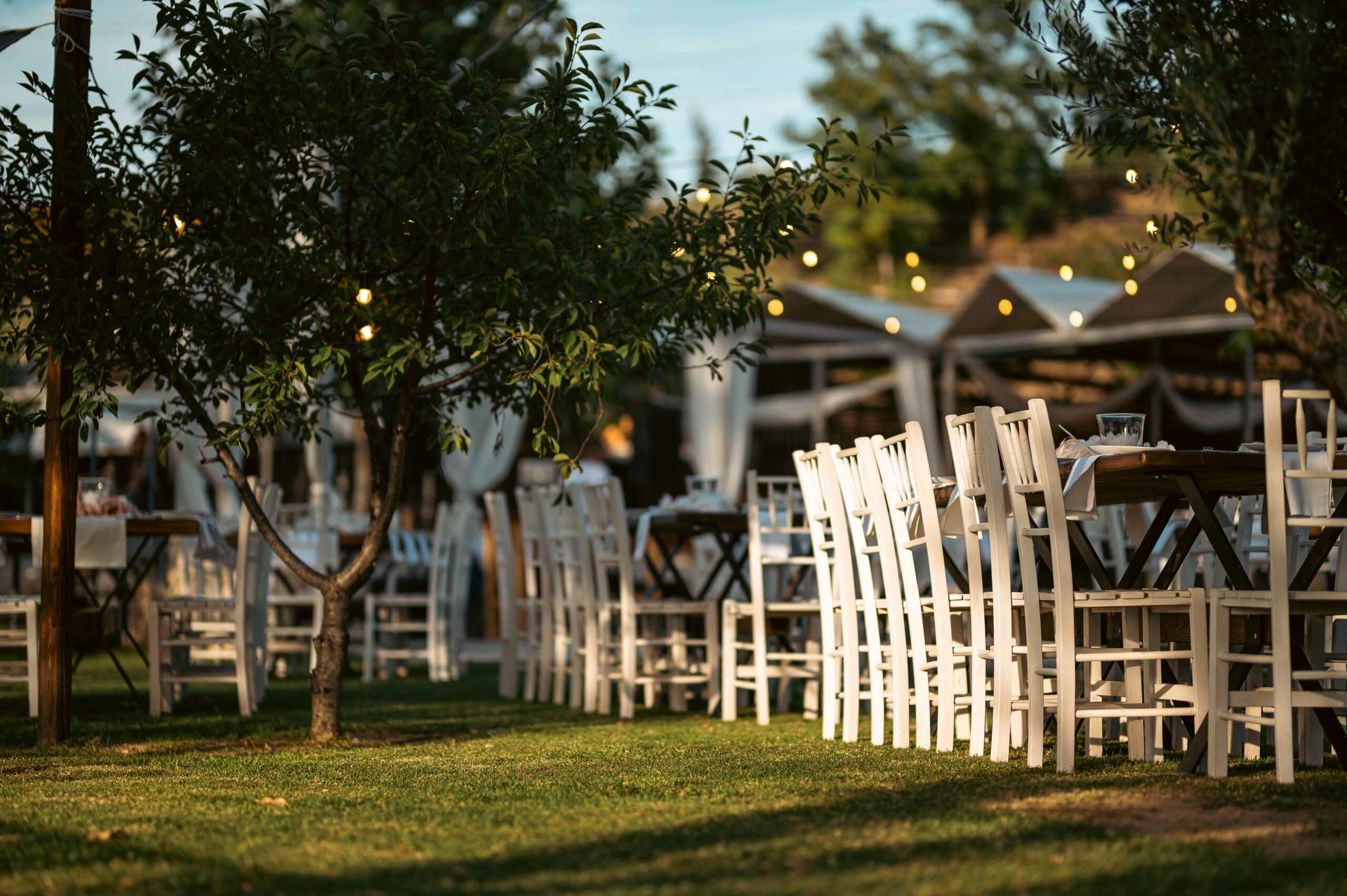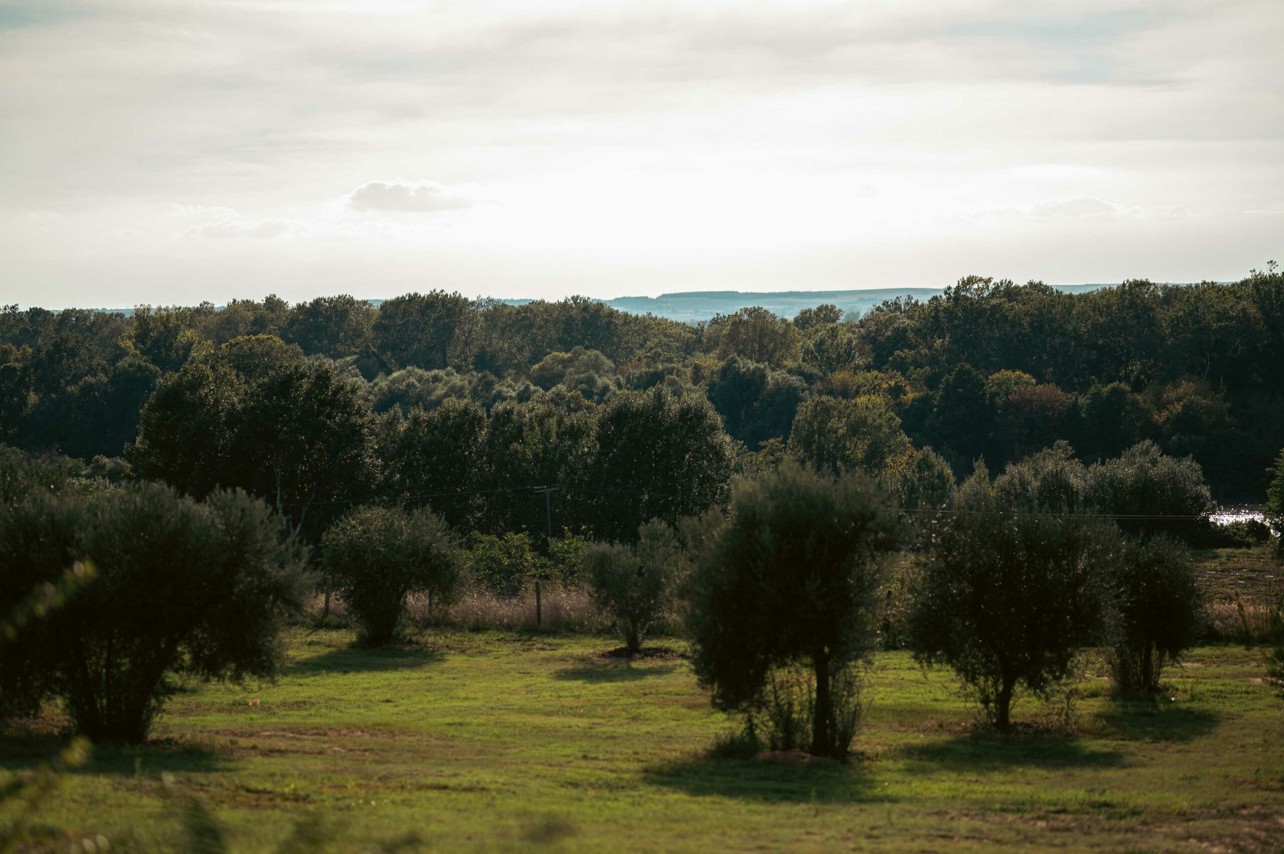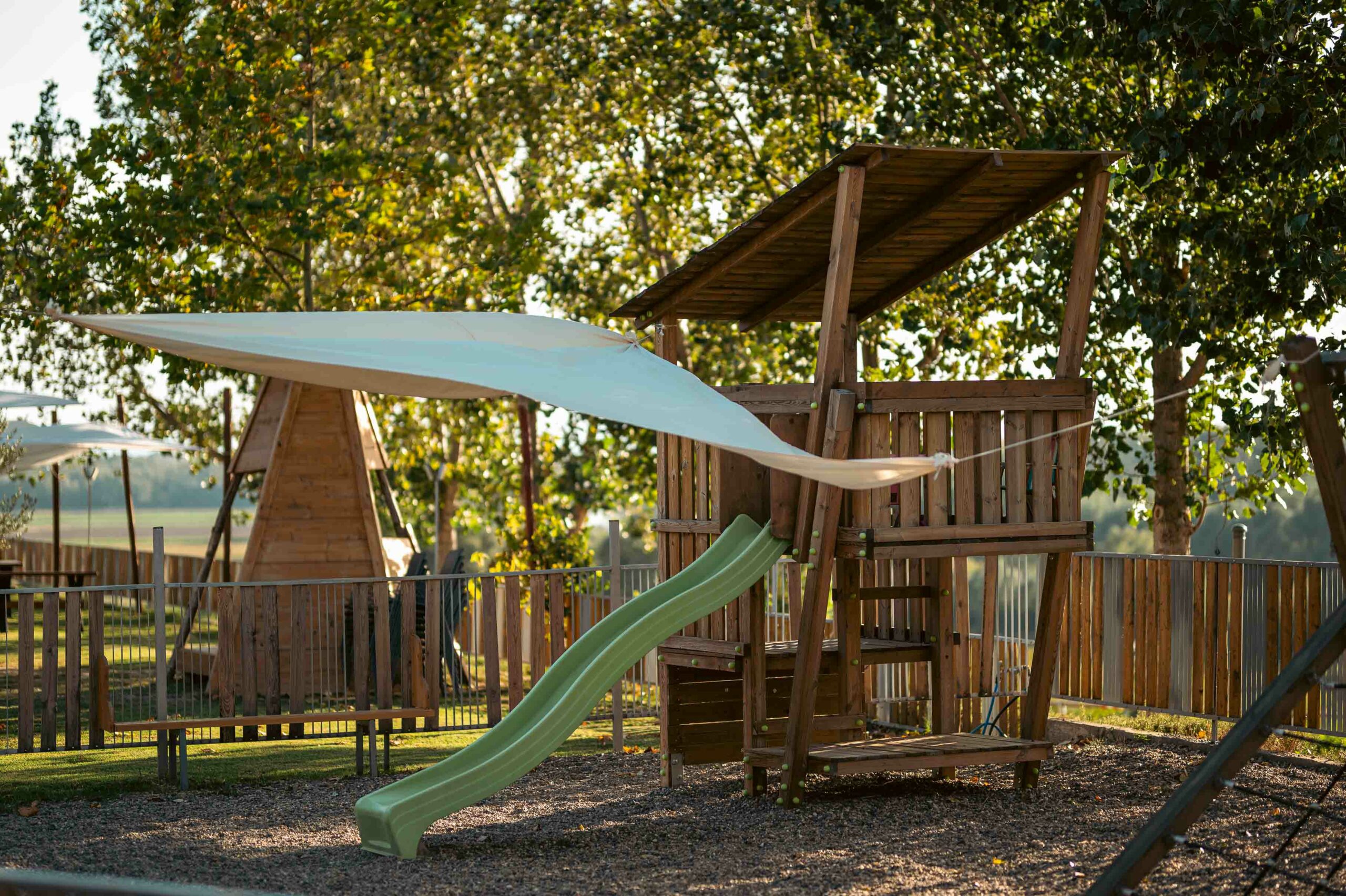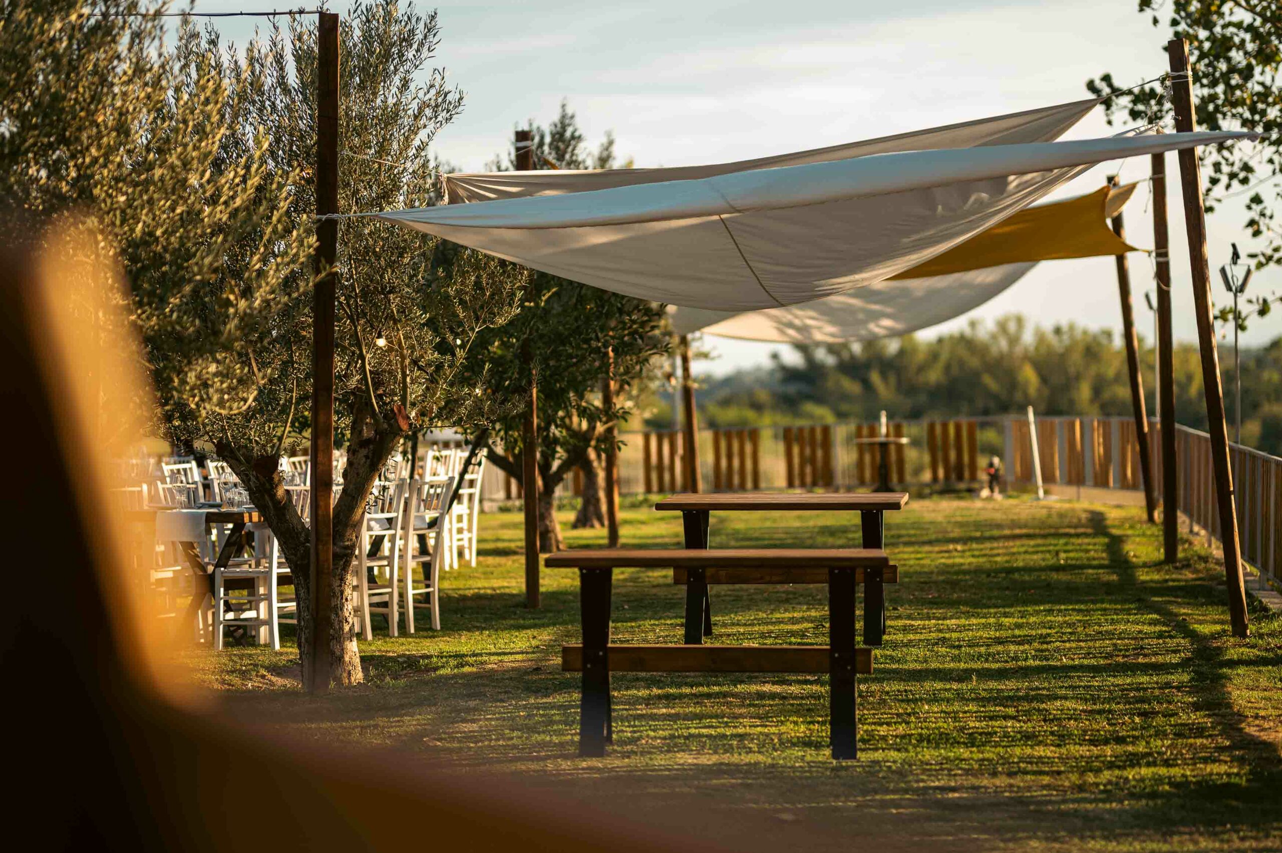Ένας πλήρως open space χώρος 60 στρ., με απευθείας οπτική επαφή στα παραποτάμια δάση και στις νησίδες του Αξιού Ποταμού, όπου συγκεντρώνονται άγρια άλογα και μια από τις μεγαλύτερες μεικτές αποικίες πουλιών στην Ελλάδα, χαρίζει στους επισκέπτες του ένα απίστευτο ηλιοβασίλεμα.